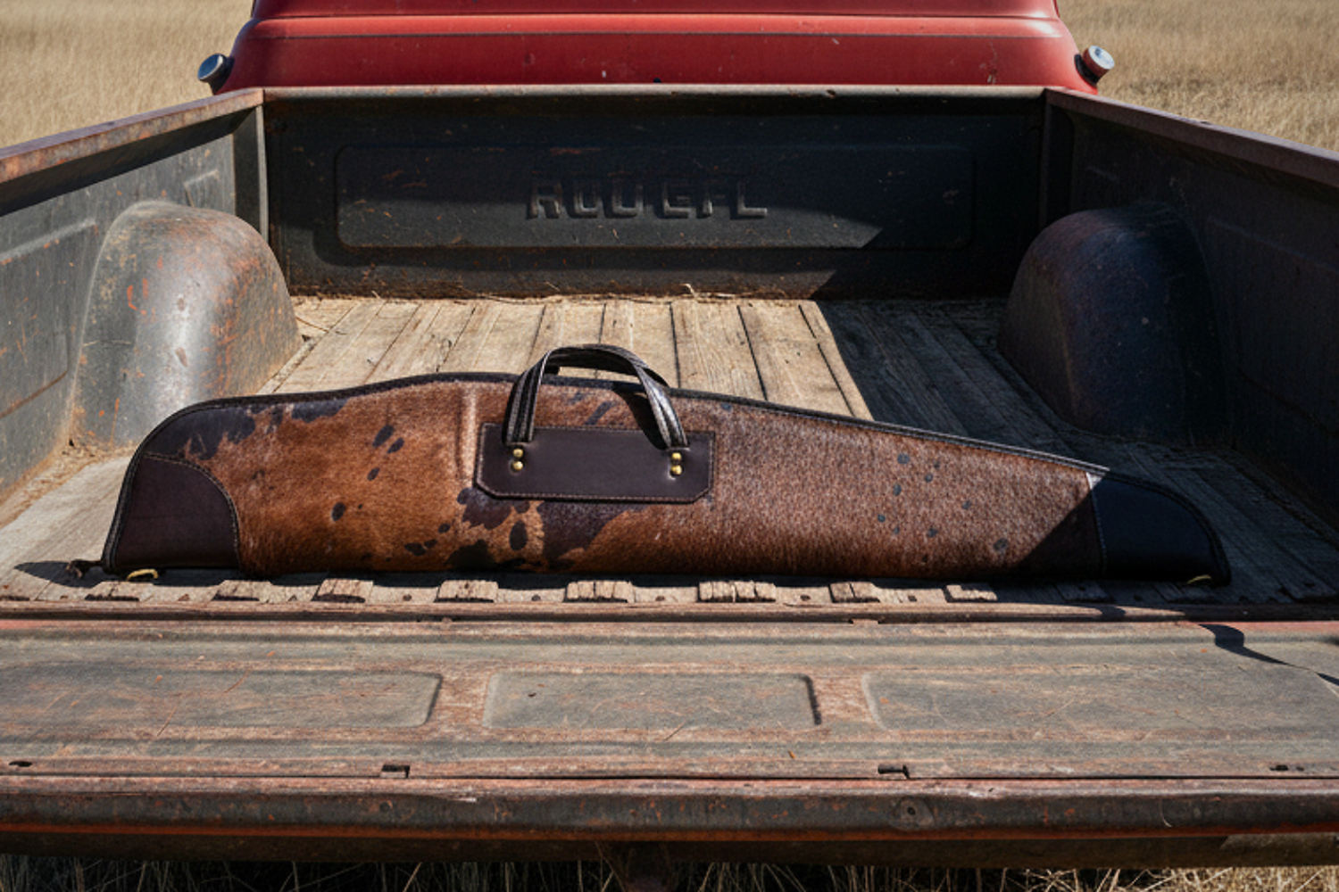 This low-profile scoped rifle case is handcrafted from premium hair-on-hide leather featuring a distinctive acid-etched pattern. The natural hide combined with the etched finish creates a bold, one-of-a-kind appearance — no two cases are ever alike.