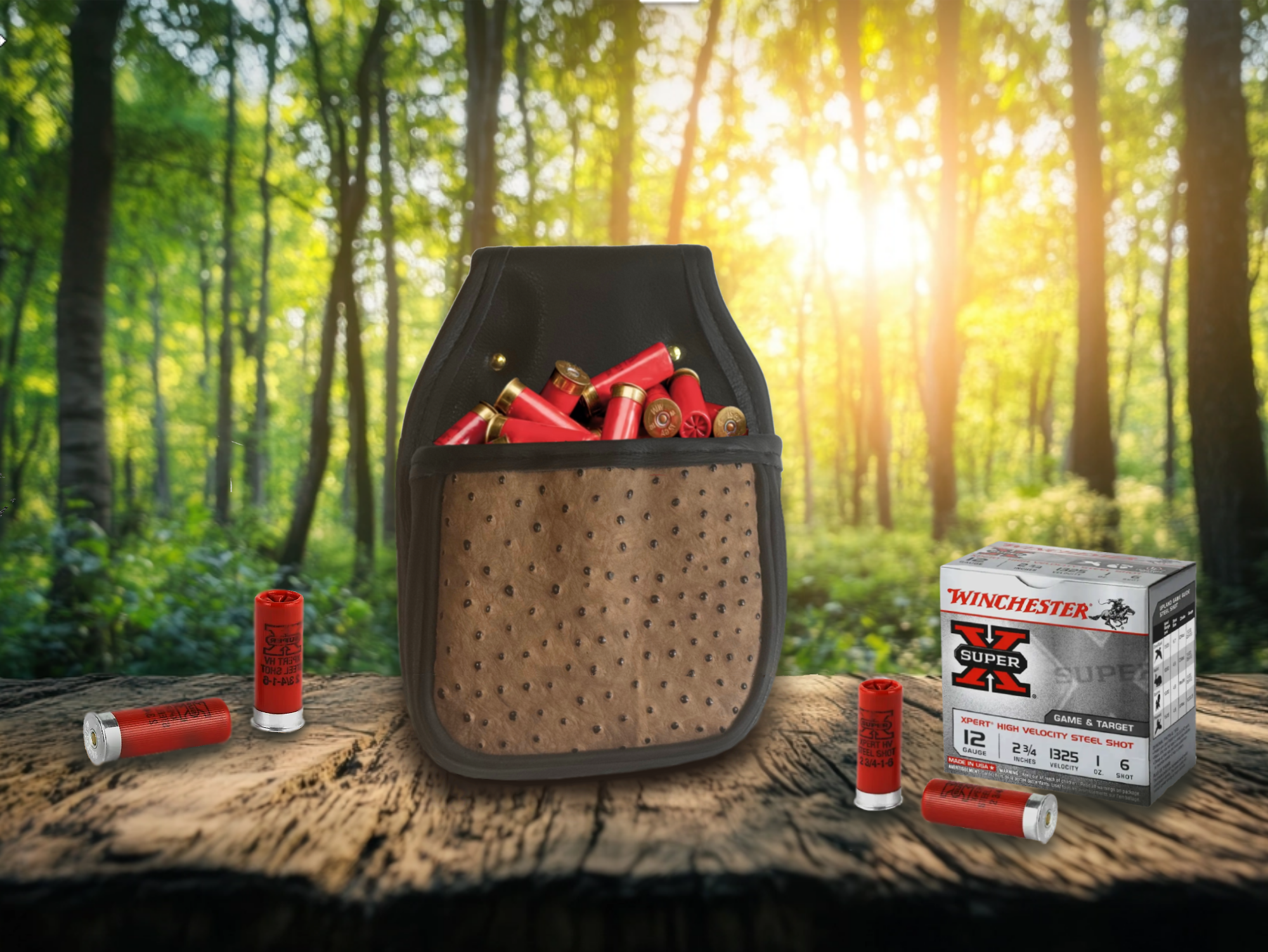 Designed for serious sportsmen, this double pocket shotgun shell bag keeps live shells and empties separate. Reinforced stitching, durable leather, and brass fittings ensure heirloom quality built to last for generations. Pair it with our custom harness leather shooting belt for a complete sporting setup.