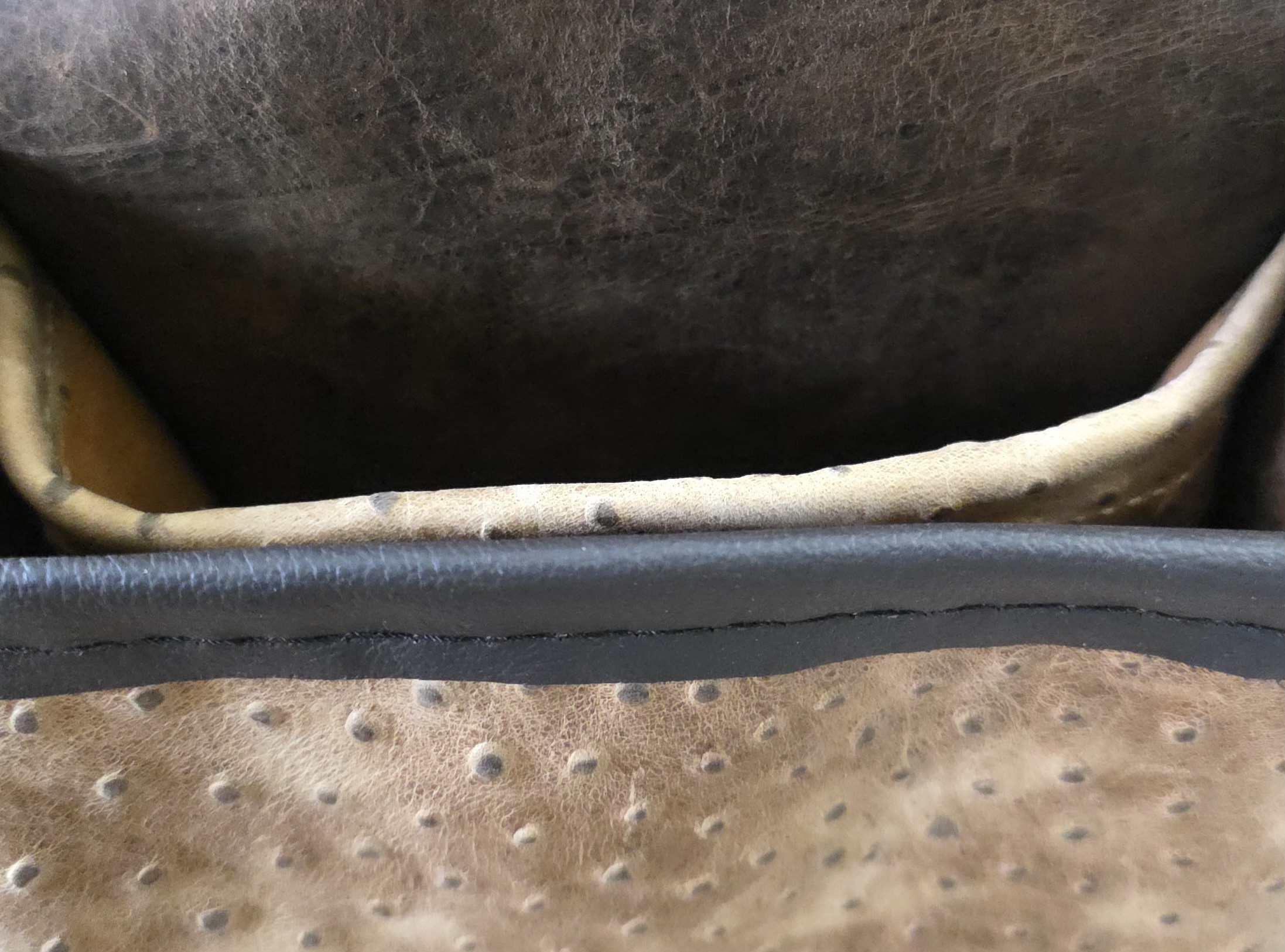 Full-grain cowhide with ostrich-embossed front and cowhide leather back