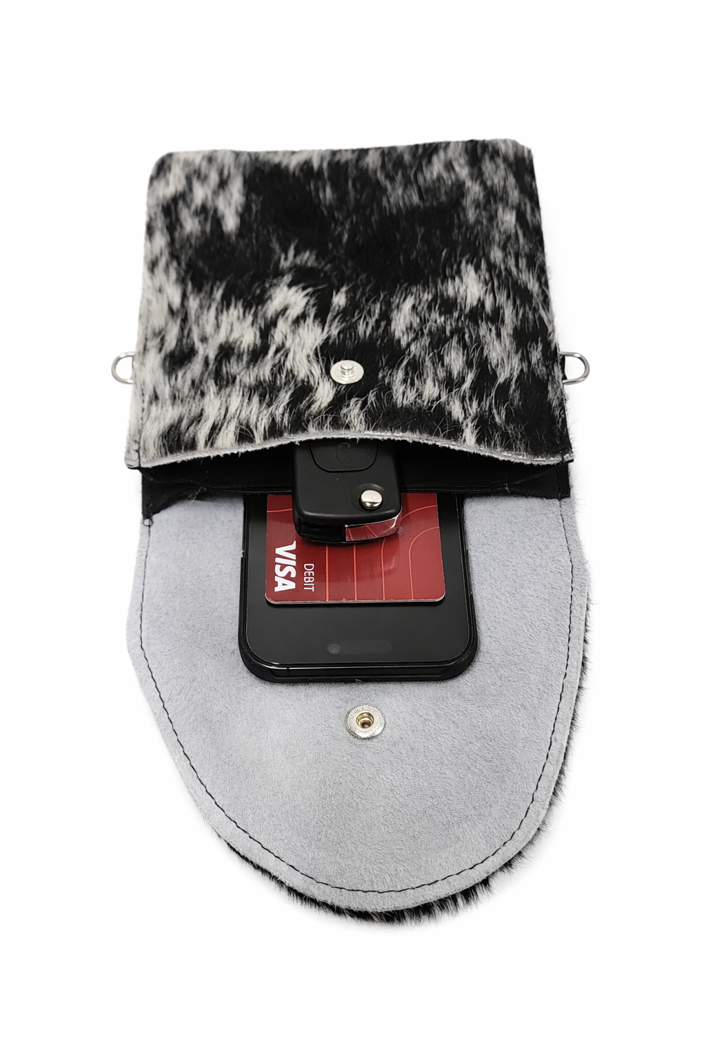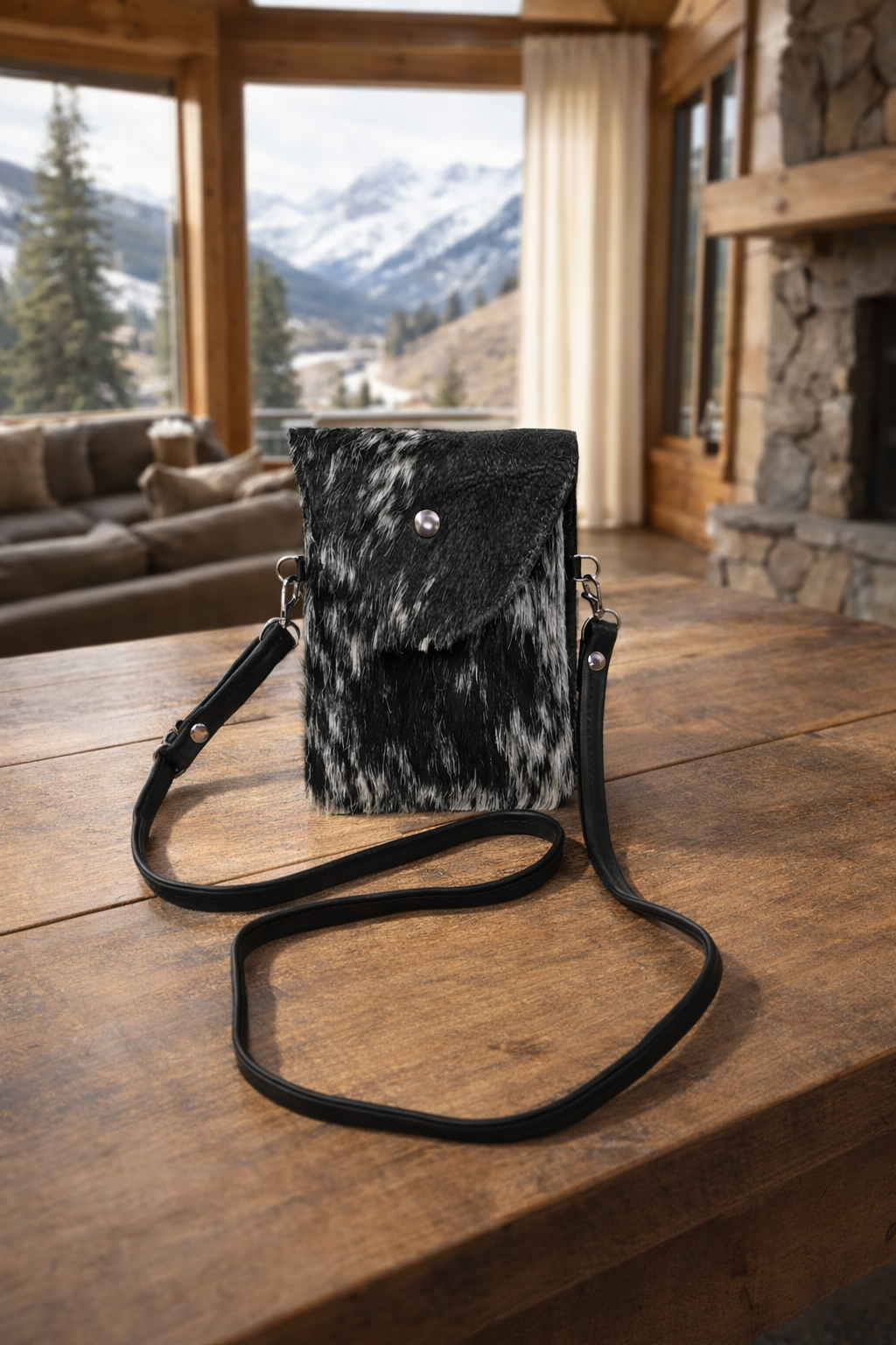 Large Black Hair-On-Hide Crossbody Cell Phone Purse