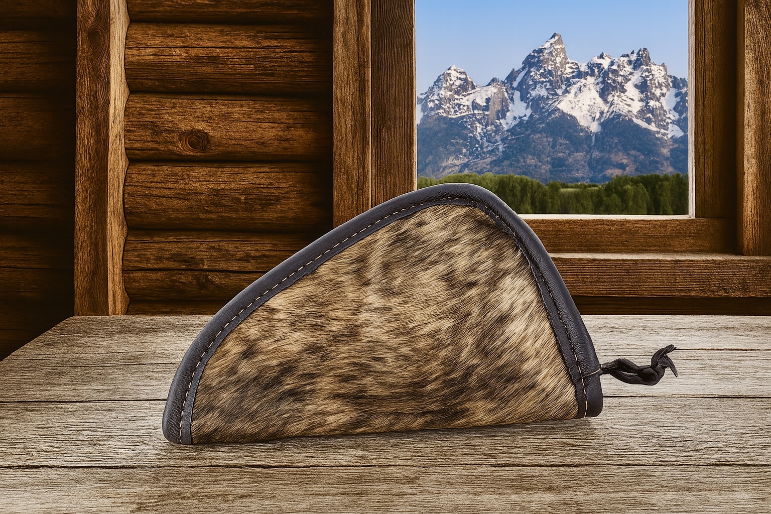 Description: Hair on hide 100% cowhide Medium leather pistol case